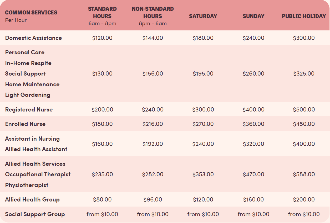 Some supports like specialty cleaning, equipment trials, customised transport solutions, or therapy assessments are offered at a fixed or quoted rate. You’ll always be given the details and asked to approve the cost before anything goes ahead.